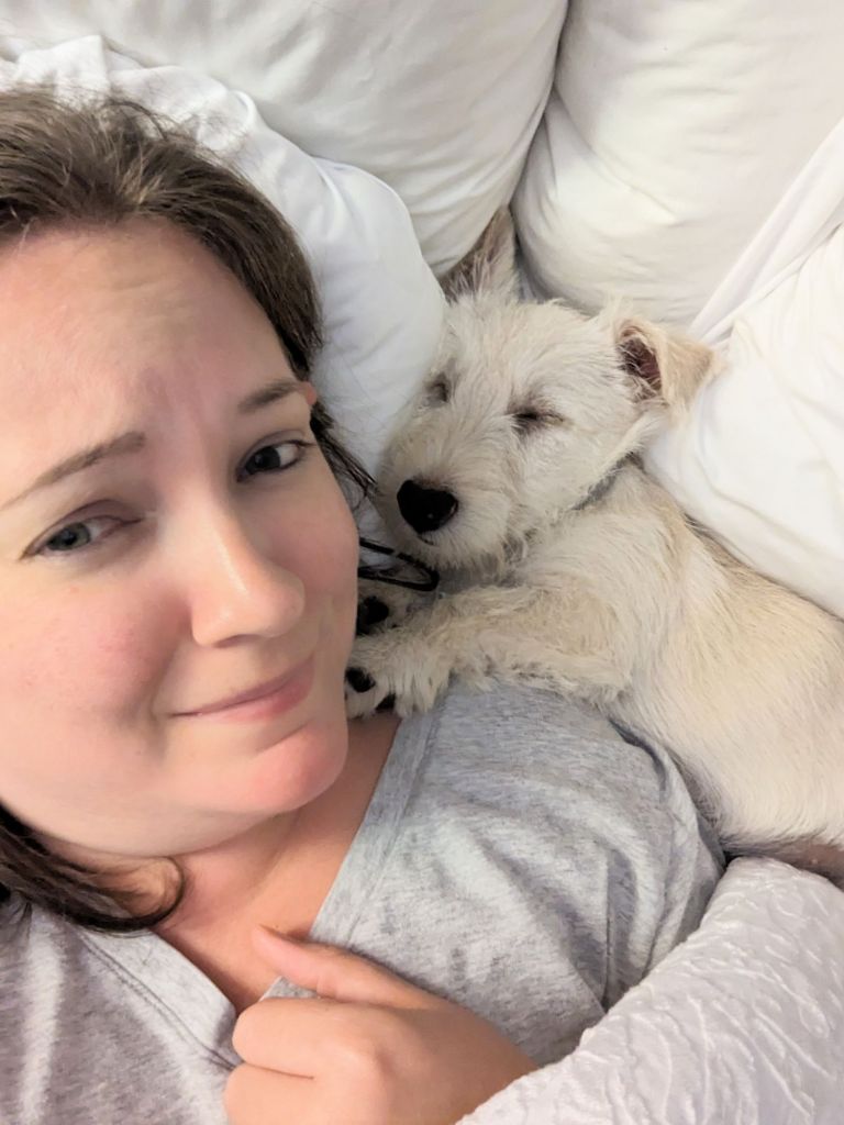 She’s truly fantastic with children. My youngest daughter has picked her up every which way with barely a widened eye in return. She has a relatively high prey drive (even for a Scottie). Squirrels beware! Despite this, she’s fantastic with cats and has never attempted to chase or harm one.