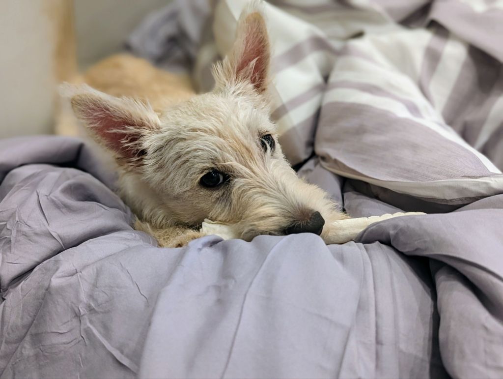 Luna is an incredibly feisty wheaten Scottie that comes to us via a small breeder by the name of Steve Greenich in Ohio. I’d been on the prowl for a wheaten female for quite awhile when I stumbled upon a video of Steve giving her a bath around three weeks old. She stared at him judgementally the entire time without so much as moving a muscle. The amount of Scottitude was off the charts and I knew I wanted to add her to our pack immediately.