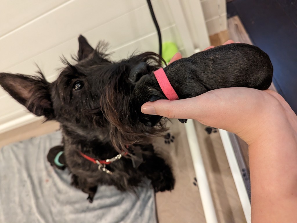 We’re eagerly awaiting a litter of puppies here at Dupplin Scotties, and preparations for this joyous (and hectic!) event are almost complete. Although her pups aren’t quite due yet, we’ve been hard at work getting everything arranged for this first-time momma. Dad gets to miss all of these theatrics, I’m afraid.