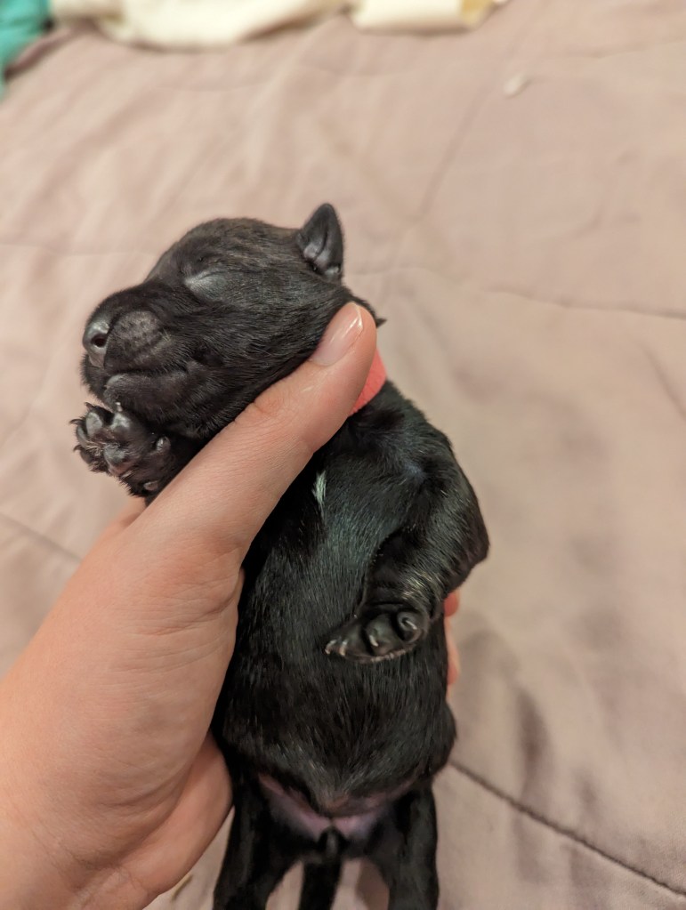 I don’t view working to save my favorite breed as any different than working to save rescue dogs. Scotties are becoming scarcer and sicker by the year. Why wouldn’t I help breed exceptionally diverse Scotties to try and address this? Nobody else is breeding specifically with genetic variability in mind so far as I’ve found. And why wouldn’t I try to help that little eight day old lost cause? His chances were low, but not zero. He deserved somebody willing to help him fight, even if he ultimately lost in the end.