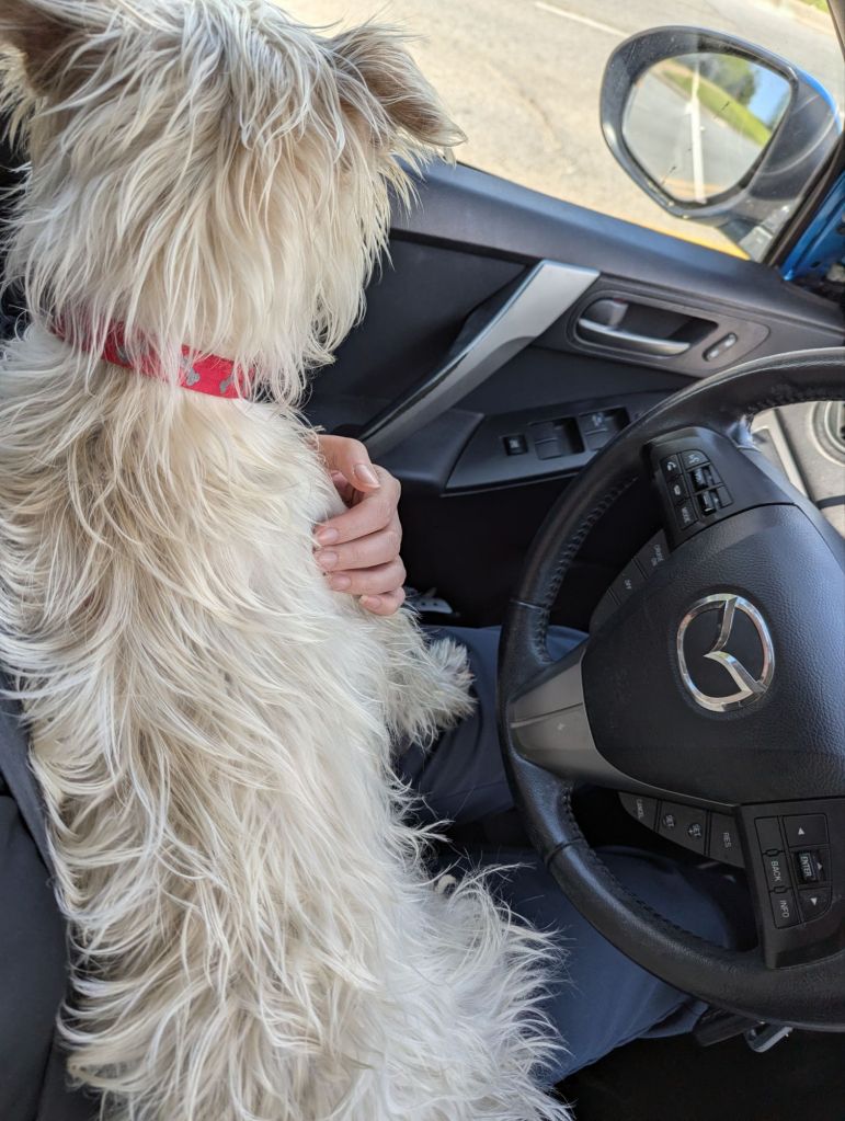 We have puppies due in two days. We have a puppy enclosure to clean, a dryer that’s yet to be delivered, a special needs daughter to care for on top of it all. But I can never ignore a Scottie or Westie sitting in a shelter. They’re such sensitive dogs. If I didn’t go and get this little dude, I’d think about him all weekend.