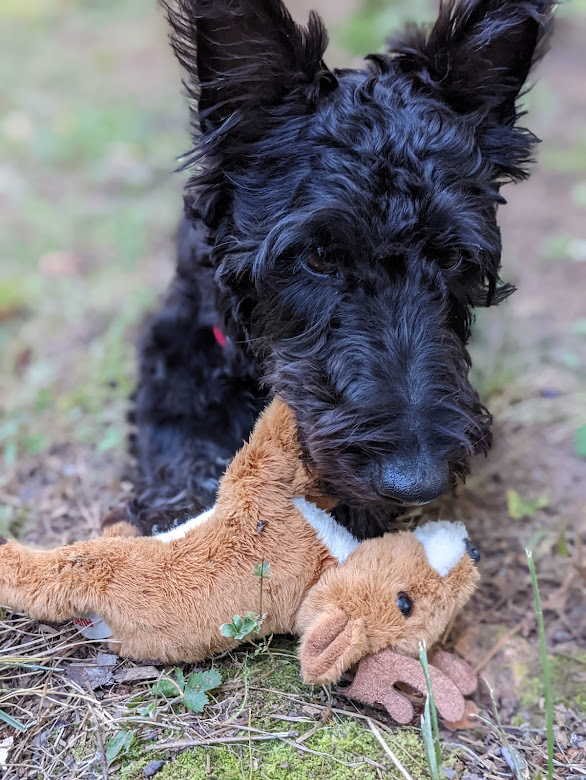 Of all the dogs I’ve ever owned, Skye is by far and away the easiest to train. She has a deeply rooted desire to please…a trait not often found in others of her breed. She loves obedience training, although she may take her time deciding if she wants to listen to each command with an appropriate level of Scottitude. She is currently in training to compete in EarthDog competitions and we hope to have her finished with her therapy dog certification in January, 2024.